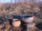 Every clay is different. To make good pottery, a clay has to be workable enough to be formed into any shape without cracking, and it also has to contain the right minerals to properly fire. Instead of doing expensive chemical tests, the best way to tell if a natural clay is good for pottery is to make some test pots. The clay from the post hole was cleaned of roots and then mixed with sifted, burned mussel shell. It was shaped by hand into two vessels (an Alabama River Incised serving bowl and a Mississippian Plain miniature cooking jar), and allowed to slowly dry for several weeks. The two pots were fired carefully in a well-controlled bond fire. The temperature was raised incrementally over a couple of hours until it got to around 1,100 degrees Fahrenheit. At that point, the pots were glowing red like metal. Then, they were carefully cooled. The picture above shows the results of the experiment a few hours later in the early morning light, sitting on the edge of the bog where the clay to make them was dug.